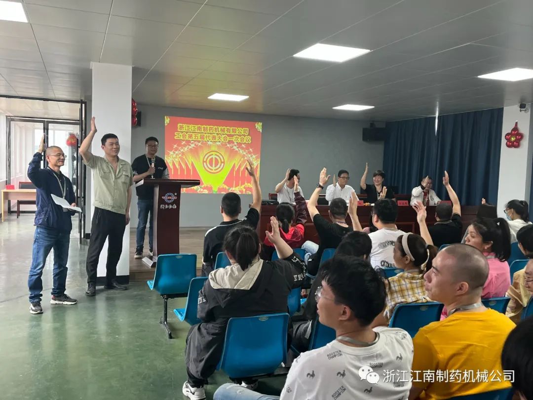 5月27日下午,浙江江南制藥機(jī)械有限公司工會第五屆代表大會一次會議在公司行政樓六樓會議室勝利召開。公司楊松董事長等主席團(tuán)成員以及公司97名會員代表參加了會議。經(jīng)全體會員代表民主選舉產(chǎn)生了公司工會第五屆委員會、經(jīng)費審查委員會及女職工委員會。
