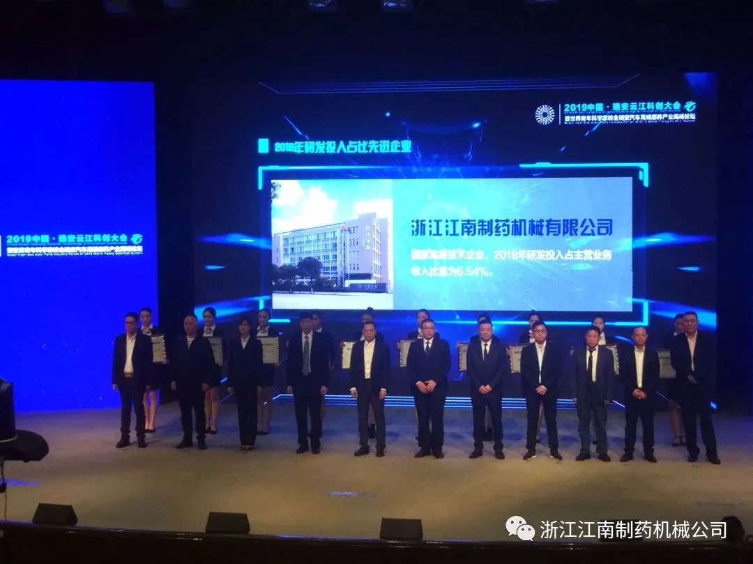 大會現(xiàn)場,還表彰了浙江江南制藥機械有限公司等12 家省第一批現(xiàn)代服務業(yè)與先進制造業(yè)深度融合試點企業(yè)、浙江省“四個百項”示范項目企業(yè)、列入浙江省重點研發(fā)計劃項目企業(yè),2018年產(chǎn)學研合作優(yōu)秀企業(yè)、2018 年研發(fā)投入占比先進企業(yè)。