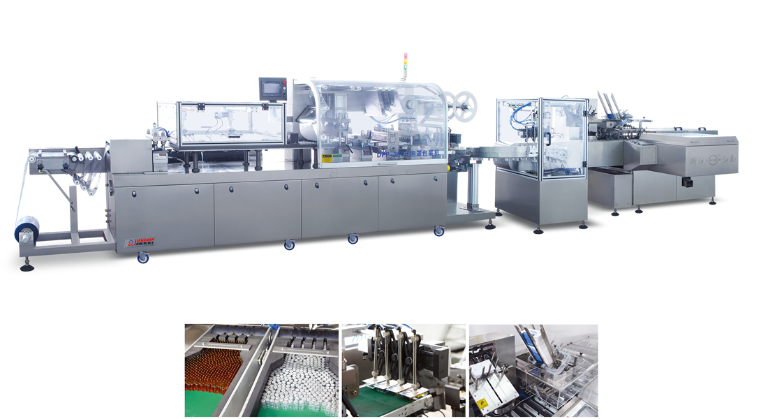 本機(jī)專用于單支安瓿瓶、單支西林瓶的混合外包裝。整機(jī)組成有塑托成型、安瓿瓶加料、西林瓶加料、熱封、沖切、裝盒。由PLC控制,先進(jìn)的自檢功能,自動(dòng)識(shí)別破泡罩、缺瓶、缺說(shuō)明書(shū)及空盒檢測(cè)記憶并對(duì)廢品100%剔除,可實(shí)現(xiàn)藥瓶的自動(dòng)入托、說(shuō)明書(shū)自動(dòng)裝盒等功能。