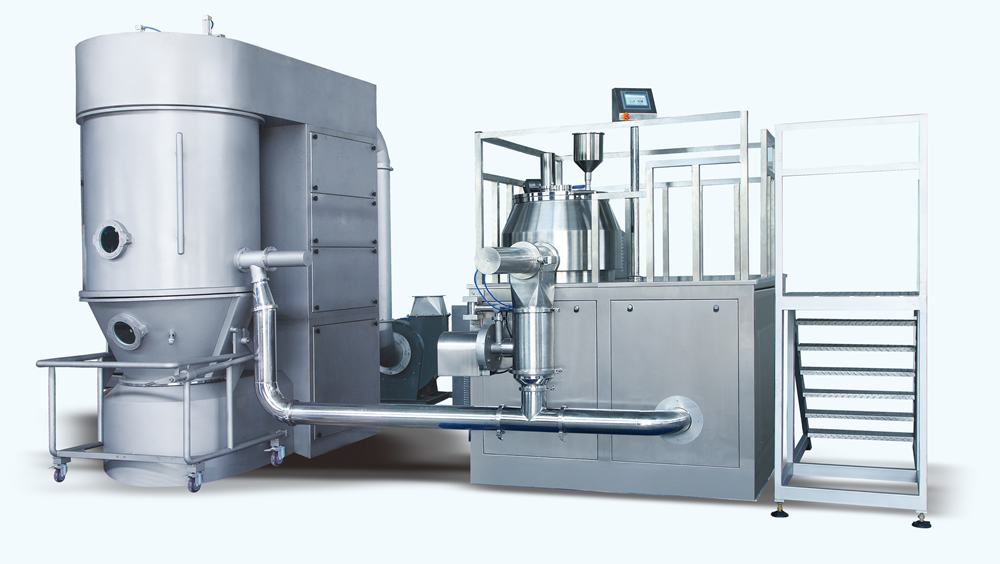 該機(jī)組是生產(chǎn)中成藥、合成藥沖劑、片劑膠囊顆粒的理想設(shè)備。該設(shè)備嚴(yán)格按照制藥工業(yè)協(xié)會"GMP"規(guī)范制造;其全部外殼。出料口、管道以及所有與藥品接觸的部件全部采用不銹鋼材料制造。整個工藝操作過程由PLC可編程序系統(tǒng)控制,有手動操作控制和自動操作控制??刂葡到y(tǒng)具備多種應(yīng)用程序,控制參數(shù)全部顯示在觸摸屏上。操作全部是在密閉狀態(tài)下,是一種優(yōu)質(zhì)高效??煽浚瑵崈?、節(jié)能、占地面積少、操作方便符合GMP規(guī)范的新型制粒干燥機(jī)組設(shè)備。